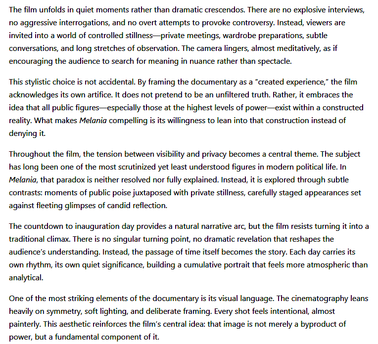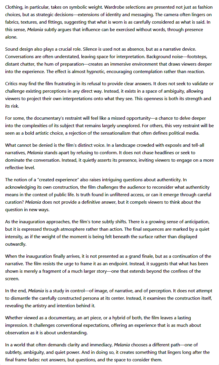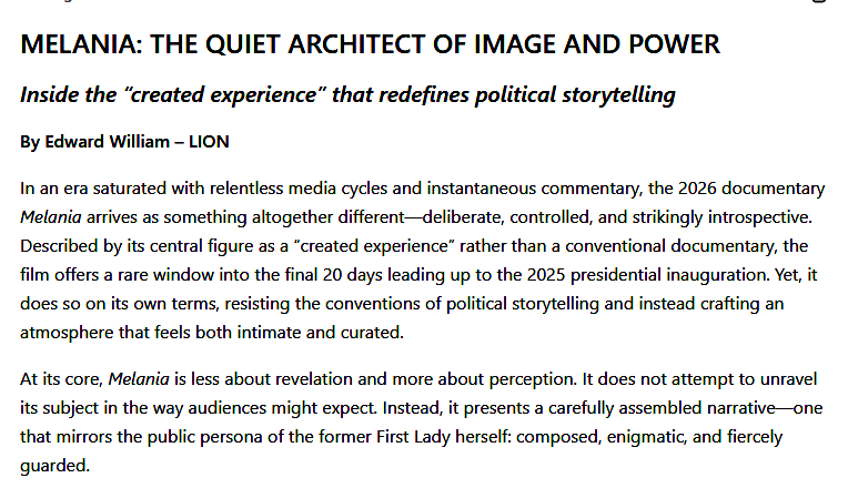 MELANIA (2026): A CINEMATIC PORTRAIT OF SILENCE, IMAGE, AND POWER